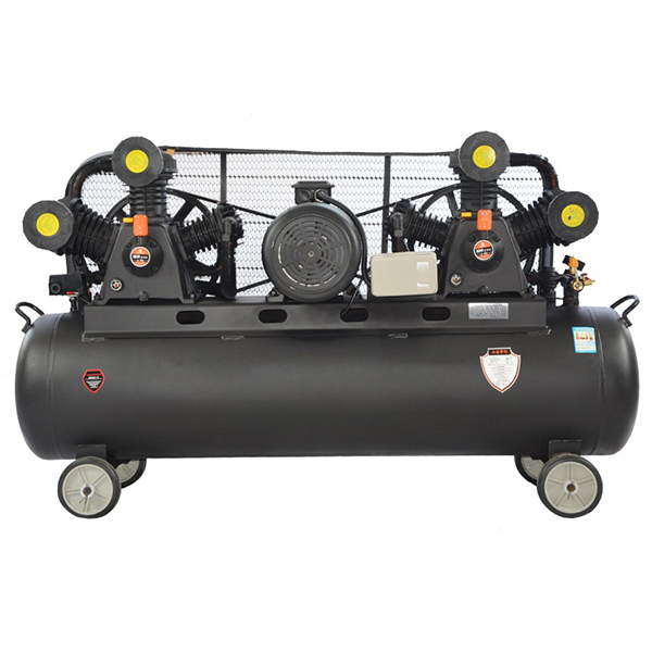 Temelji na sistemu jermenastega pogona. Motor poganja kompresor prek jermena, rotacijsko gibanje motorja pa se prek jermena prenaša na bat ali vijak kompresorja, ki stiska zrak in ga shranjuje v zračni rezervoar. Ko je zunanja potreba, se stisnjeni zrak po cevi dovaja do uporabne opreme. Na učinkovitost in izhod zraka kompresorja vplivajo različni dejavniki, kot so moč motorja, napetost jermena, struktura kompresorja in tako dalje.