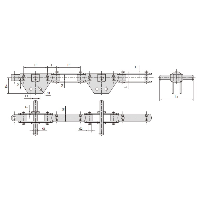 Ta zasnova naredi dvojno artikulirane transportne verige primerne za široko paleto industrijskih aplikacij, kjer so fleksibilnost, učinkovitost in zanesljivost bistvenega pomena.