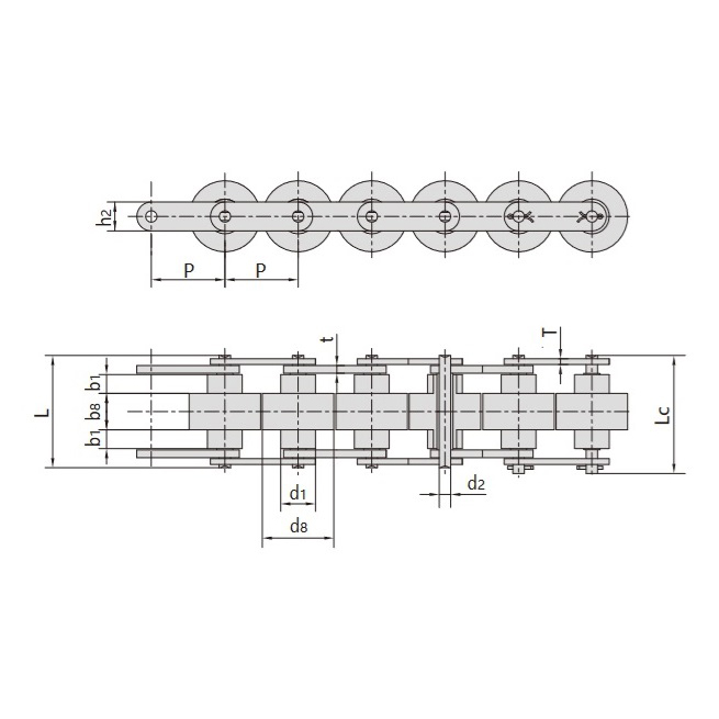• Strukturne značilnosti:Vključuje valje, notranje in zunanje verige, sornike in puše. Valji neposredno nosijo težo delovne plošče in prevoženih predmetov, medtem ko valji na vodilni tirnici omogočajo drsenje, kar omogoča nemoten prenos materiala.