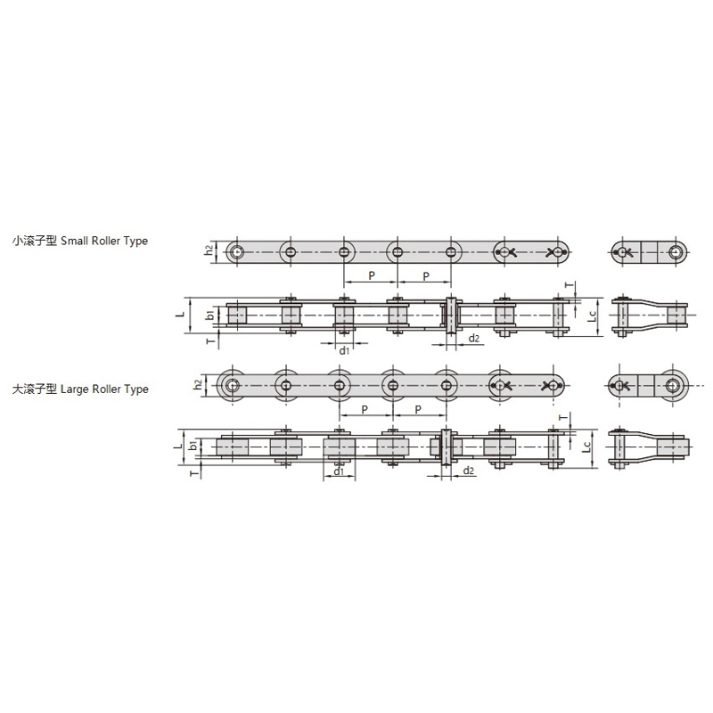 - Večji razmak:Korak je dvakrat večji od standardnih verig, kar izboljša porazdelitev napetosti in podaljša življenjsko dobo verige.
