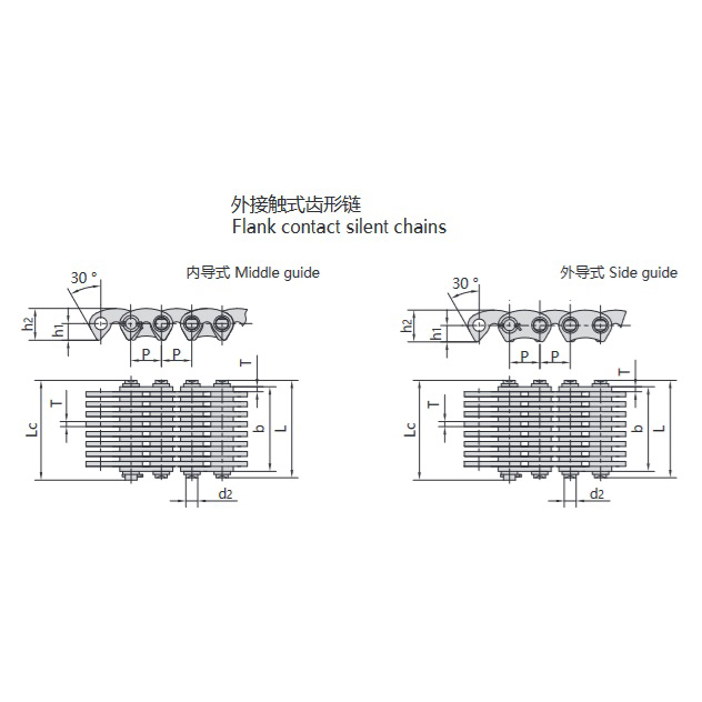 - Notranje zobe veriga:Notranji profil zob se stika z zobmi zobnika, kar zmanjšuje prečni izpad, vibracije in zagotavlja bolj gladek prenos, čeprav je pozicioniranje manj stabilno.