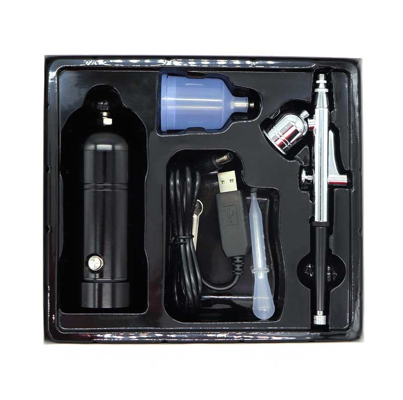 Njegova edinstvena zasnova in lastnosti ga naredijo nepogrešljivo orodje za številne umetniške stvaritve in industrijske aplikacije. Mini pištoli kompresorji običajno dovajajo stisnjen zrak skozi brizgalno pištolo v brizgalno opremo za natančno nanašanje barve.